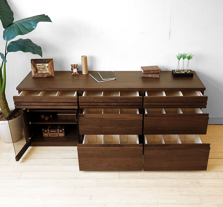 ユーティリティな空間を演出するユニット収納シリーズ ウォールナット材を使用したユニット型のモダンスタイルの収納ボード(幅180cm)。