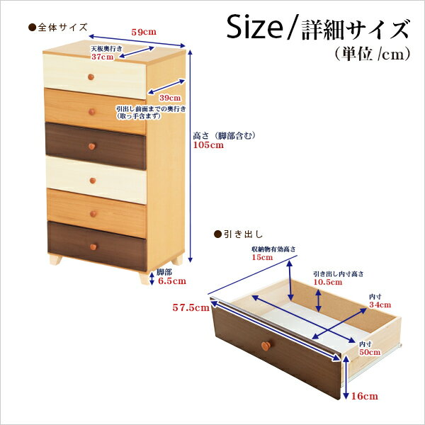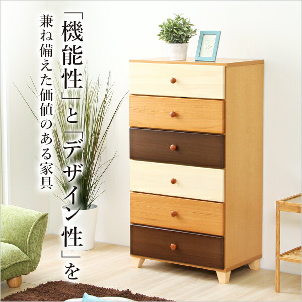ブラウンを基調とした天然木ハイチェスト 6段 幅60cm Loarシリーズ 日本製・完成品|Loar-ロア- type1